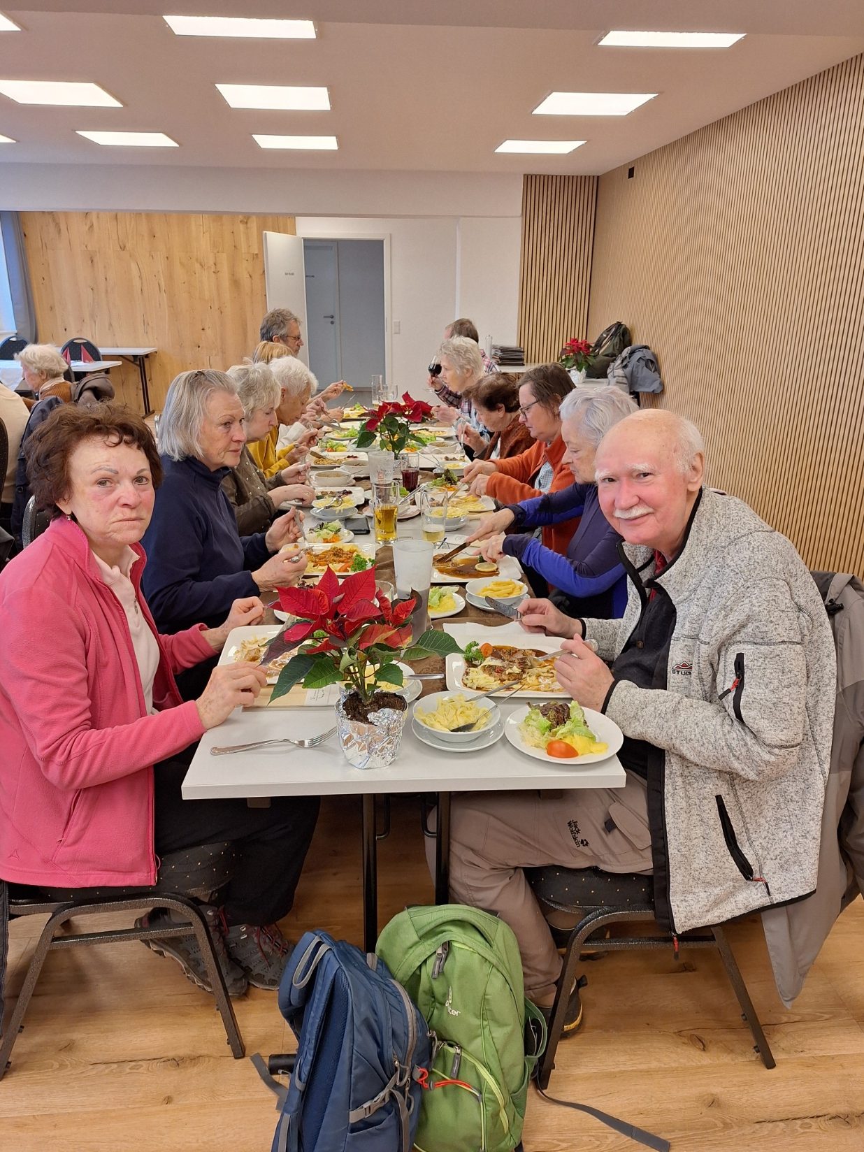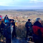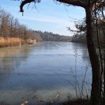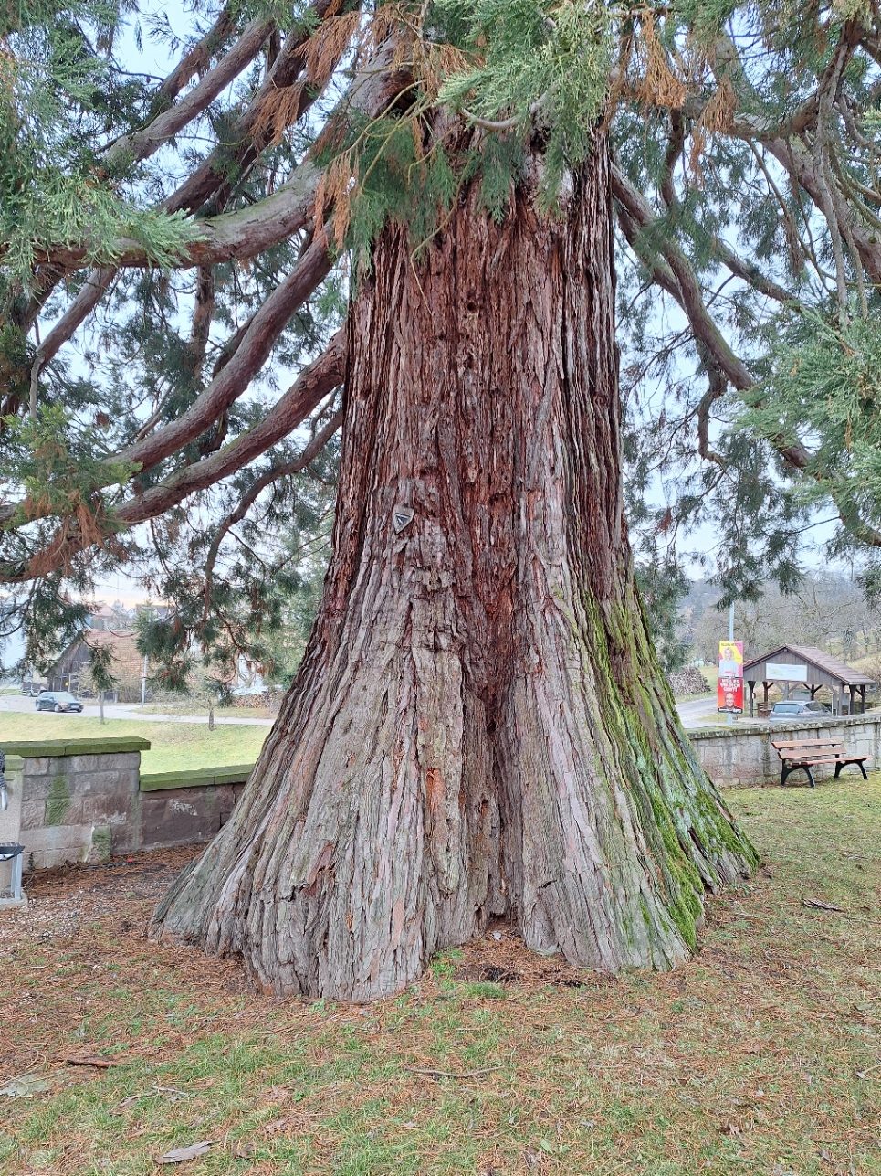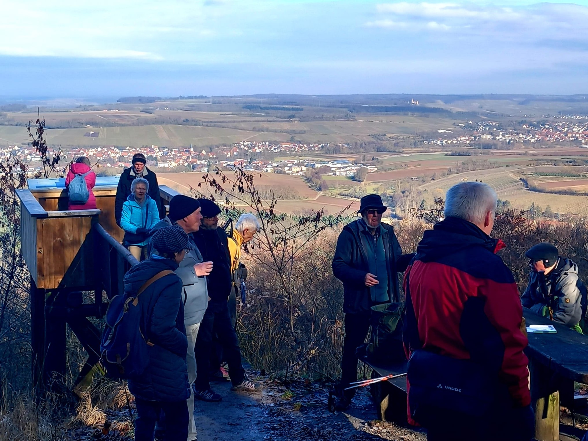 Der Aufstieg zum Heiligenbergsee erfolgte wegen der nassen Hohlwege über den bequemen Weinbergweg. Noch war der See mit einer Eisschicht bedeckt. Vorbei am Schlierkopf, immer auf der Höhe, erreichten wir den Weißen Steinbruch, in dem ehemals Stubensandstein abgebaut wurde. Er ist bekannt durch den Procompsognathus, einem weltweit nur hier gefundenen, 40 cm großen Raubtier auf 2 Beinen. Von der Aussichtsplattform aus schweift der Blick weit ins Zabergäu und zum Heuchelberg. Auf guten Wegen ging es abwärts in Richtung Ochsenbach, zur Schlusseinkehr. Da die Busse sonntags nur 2-stündlich ins Kirbachtal fahren blieb uns noch Zeit für einen Spaziergang zum Mammutbaum auf dem Friedhof, dessen Stamm 10 Frauen mit ausgestreckten Armen umspannen konnten. Trotz Busverspätung erreichten wir noch die S-Bahn in BiBi und kamen gesund und munter zu Hause an. R.C.