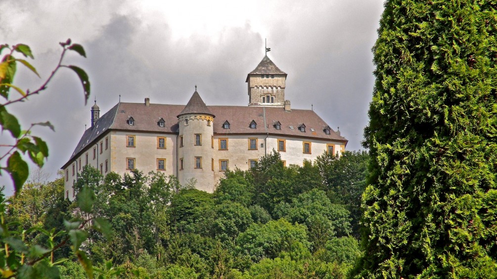 2.Tag: Nach ausgiebigem Frühstück starteten wir vom Hotel aus zur zweiten Wanderung. Zunächst wanderten wir am Schulmühlenbach entlang, an dem die romantische Schulmühle liegt am Zusammenfluss von Schulmühlenbach und Leinleiter. Bald nach der Siegritzer Mühle ging es leicht aufwärts ins Werntal. In der Schnapshütte beim Pavillon oberhalb von Heiligenstadt erinnerten wir uns bei einem kleinen Umtrunk an die Wanderung vom Jahr zuvor, die wir hier wegen starken Regens hatten beenden müssen. Dieses Mal konnten wir bei schönstem Wetter weiterwandern. Zunächst gelangten wir zum Judenfriedhof, den die Nazis im Dritten Reich nicht schleiften, weil er unter dem Schutz der Grafen Schenk von Stauffenberg stand. Mit einer Gedenkpause erinnerten wir uns an die Schrecken der Nazizeit, ehe wir in einem weiten Bogen weiterwanderten und unterhalb des Schlosses Greifenstein nach Heiligenstadt hinein kamen. Am Marktplatz kehrten wir ein und besuchten die üppig ausgemalte spätgotische Kirche St.Veit und St. Michael. Entlang der gemächlich dahinfließenden Leinleiter ging es anschließend zurück nach Veilbronn, wo uns wieder Wellness und opulente Verköstigung erwarteten.