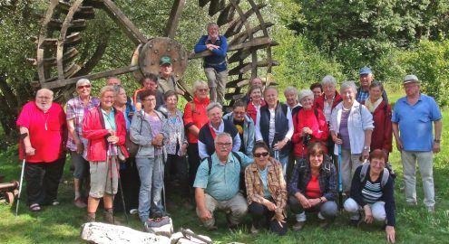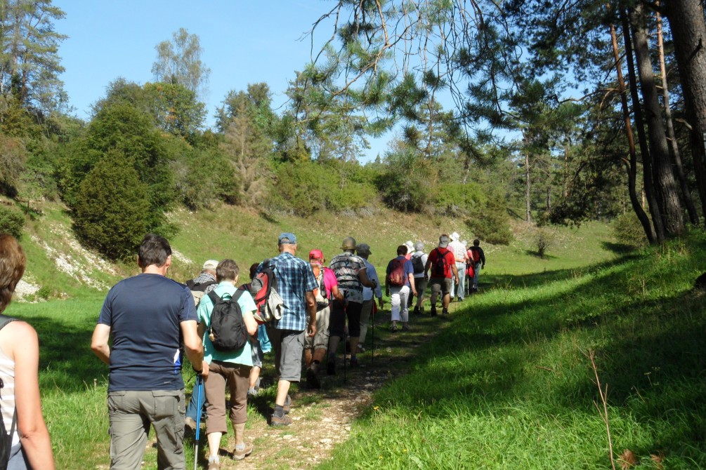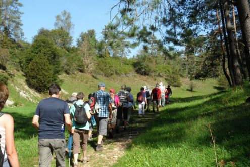 Nach dem Frühstück brachte uns der Bus nach Heiligenstadt zum Marktplatz. Dort starteten wir hinter dem Brauereigasthof Drei Kronen. Entlang der sich sanft durch die Landschaft schlängelnden Leinleiter verließen wir den Ort, kamen am Heiligenstädter Badesee vorbei und erreichten bald Zoggendorf, gingen an Burggrub vorbei und durch den hübschen Ort Oberleinleiter mit seinem Brauereigasthof. Bei der 1975 restaurierten Heroldsmühle, die schon im Jahr 1355 von einem Müller betrieben wurde, pausierten wir. Leicht bergauf ging es weiter durch Wiesen und Felder und rechts von uns am Laubwald entlang. Plötzlich veränderte sich die Landschaft. Wir durchquerten ein Trockental, ähnlich den Tälern der Schwäbischen Alb. Felsige Hänge, Magerrasen, Gesträuch und Kiefern bestimmten die Vegetation. Vor dem Ort Laibarös veränderte sich die Landschaft erneut; wir kamen durch Wiesen und freies Feld. Schatten gab es kaum mehr. Als wir Huppendorf erreichten, waren wir nicht nur durstig, sondern auch froh, am Ziel zu sein. Später brachte uns der Bus zurück und auf die Erholung im Wellnessbereich folgte das vorzügliche Abendessen. Beim „ Bunten Abend mit Musik und Tanz“ merkte man nichts mehr von Müdigkeit. Es wurde viel gelacht, getanzt und geschunkelt und auch der Dank kam nicht zu kurz.