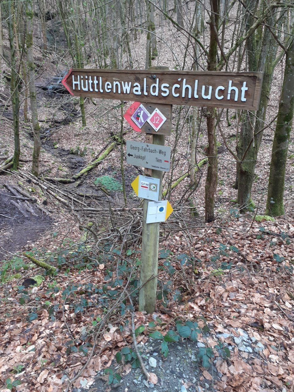 Am 2. Tag starten wir in Spiegelberg (Parkplatz an der Feuerwehr) und wandern auf dem GFW durch die wilde Bodenbachschlucht nach Wüstenrot.