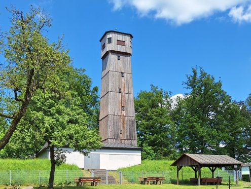Diese Strecke ist weniger anstrengend als die des Vortages, so dass wir durch den Weihenbronner Wald, auf relativ ebener Strecke unser Ziel, den Steinknickleturm, in Neuhütten erreichen. Die weite Aussicht auf den Schwäbisch-Fränkischen Wald belohnt uns für die Strapazen der Wanderung.