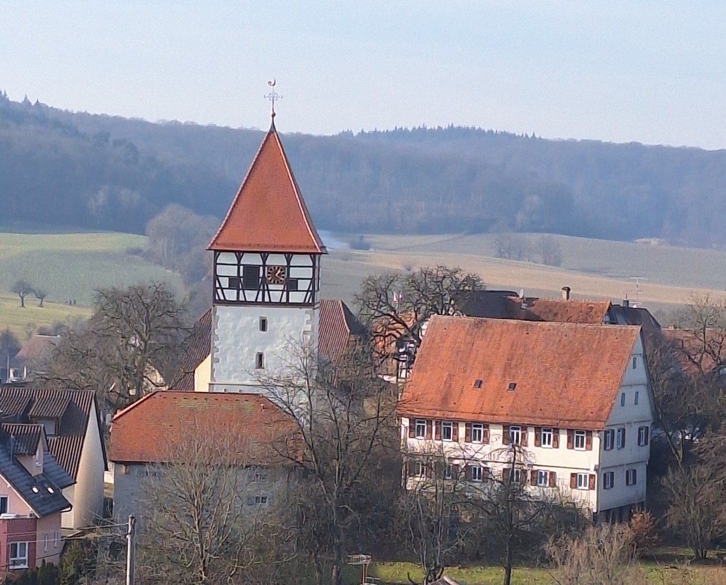 Von Häfnerhaslach aus, der Name weist auf das vergangene Hafnerhandwerk hin, steigen wir hinauf auf die Höhen des Stromberges, vorbei am Heiligenbergsee und dem Schlierkopf.