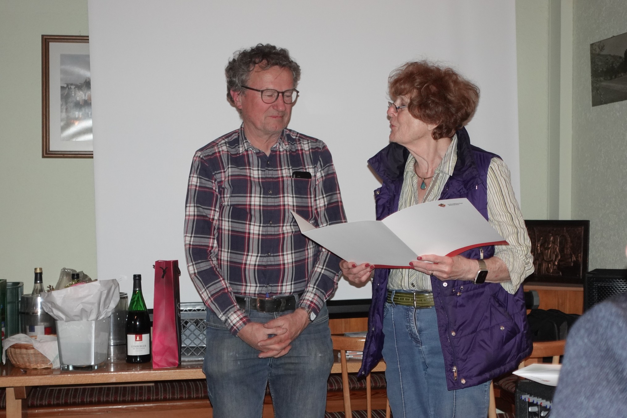 Die Ehrungen übernahm die Gauvorsitzende Christel Krumm. Für 70 Jahre Mitgliedschaft wurde Frau Magdalene Weigel geehrt, für 25 Jahre Mitgliedschaft Frau Inge Sibold und für 25 Jahre Mitgliedschaft Herr Rainer Gessler, der beim letzten Mal verhindert war. Ein Ausblick auf unsere Wanderreise ins Fichtelgebirge und die Angebote der Ein- und Mehrtagestouren der Ortsgruppe Tamm und des Stromberg-Gaus waren vielversprechend Die Bilderschau des vergangenen Jahres (R. Heckhorn) rundeten den harmonischen Abend ab.                                            Hipp
