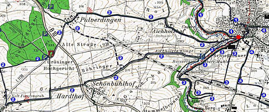 Weg Nr. 2: Über den Aichholzhof – Pulverdingen zum Keltenfürst nach Hochdorf – Hardt /Schönbühlhof – Eichholzer Klinge