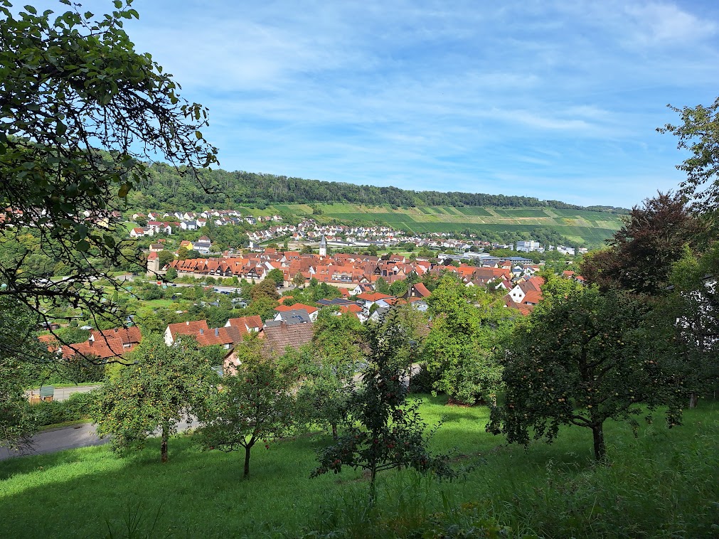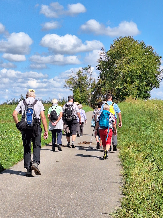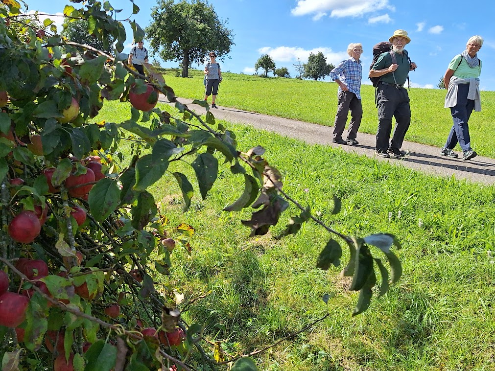 Unser Weg führte uns über die Hohenloher Ebene, vorbei an einigen kleineren Weilern, aber vielen Möglichkeiten Pflaumen und Äpfel zu probieren. Überrascht waren die Teilnehmer über die große Anzahl von Obstplantagen, die man eher am Bodensee vermutet hätte. Nach unserer Rast im Salltal erreichten wir auch schon nach ca.13 km unser Etappenziel Wohlmutshausen. Ab hier fuhren wir ins Hotel nach Ingelfingen.